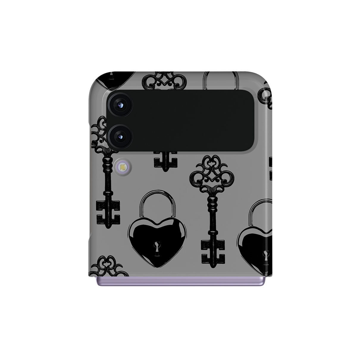 This Samsung Galaxy Z Flip 4 phone case design carries the weight of secrets and the thrill of discovery. Locks and keys scatter like clues to untold stories, each one guarding a deeper desire. Keyholder is a promise that what’s meant for you will always find its way.