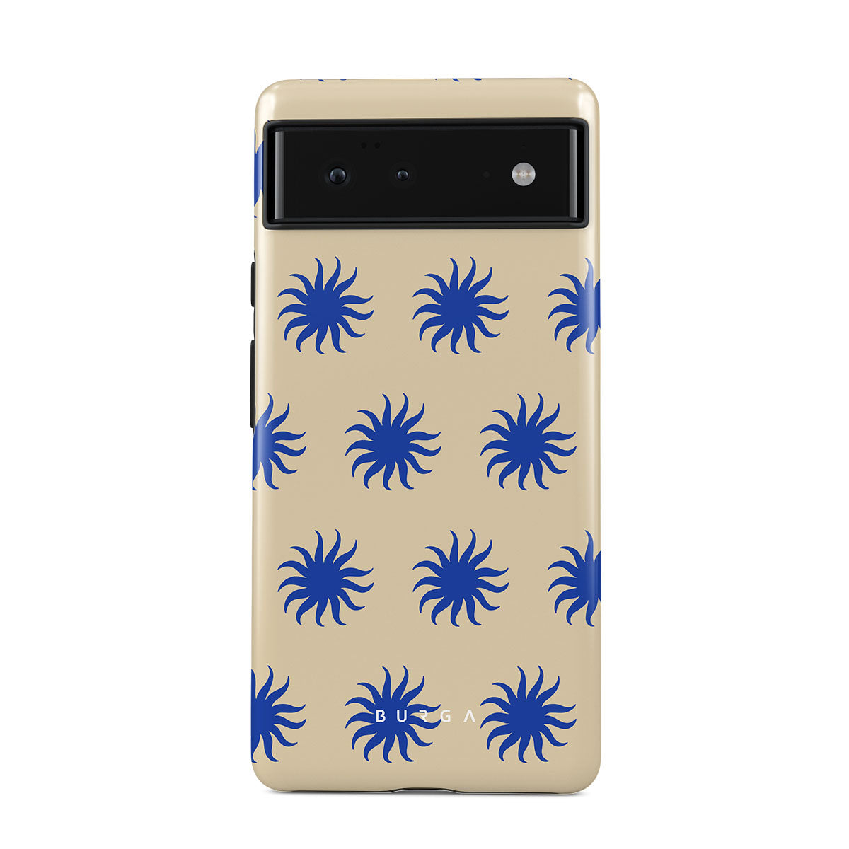 Immerse yourself in the vibrant spirit of the tropics with our La Playa Google Pixel 6 Pro phone case. This design boasts a warm, sandy beige base highlighted by striking blue motifs, reminiscent of the breezy Caribbean islands. It’s a stylish celebration of coastal beauty.