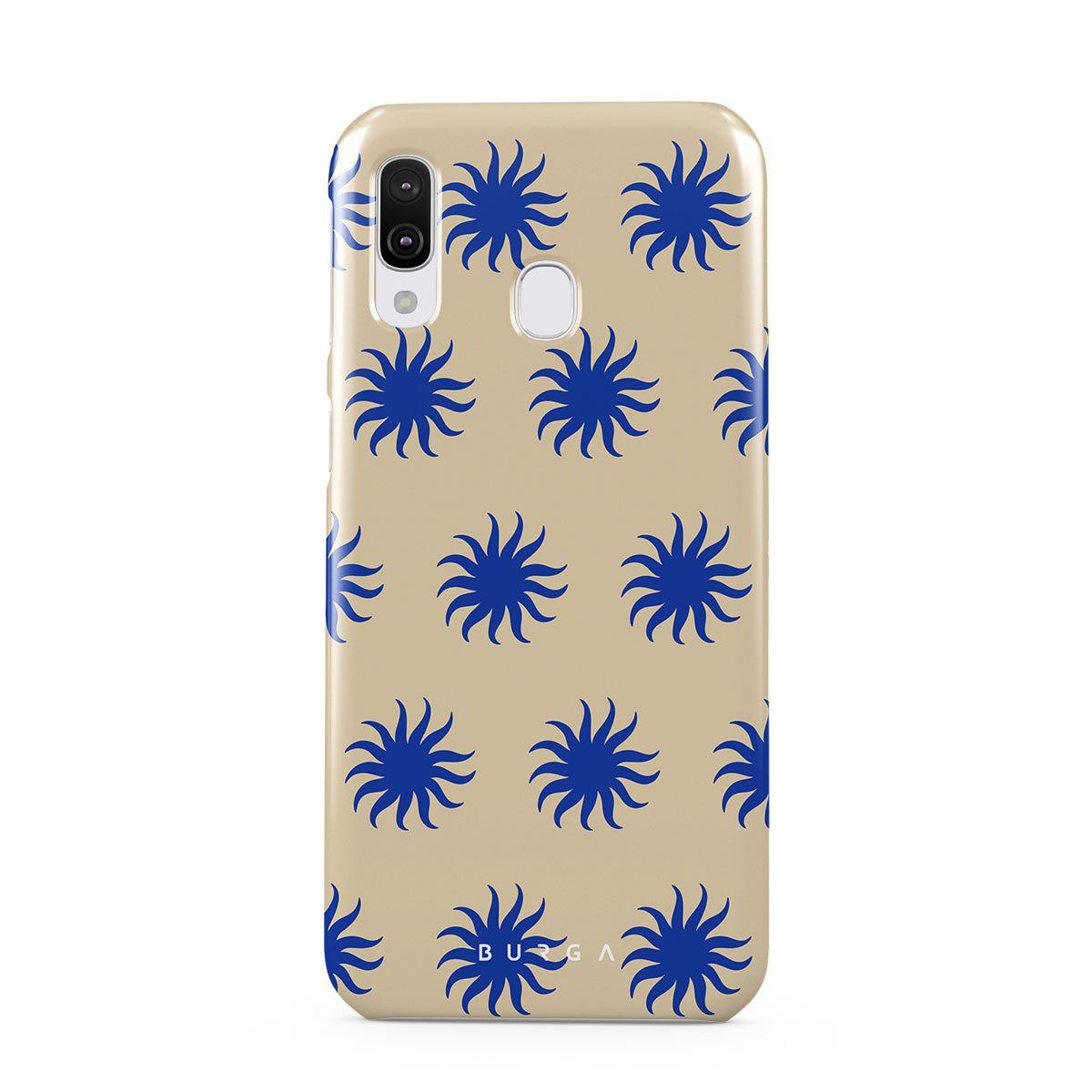 Immerse yourself in the vibrant spirit of the tropics with our La Playa Samsung Galaxy A40 phone case. This design boasts a warm, sandy beige base highlighted by striking blue motifs, reminiscent of the breezy Caribbean islands. It’s a stylish celebration of coastal beauty.