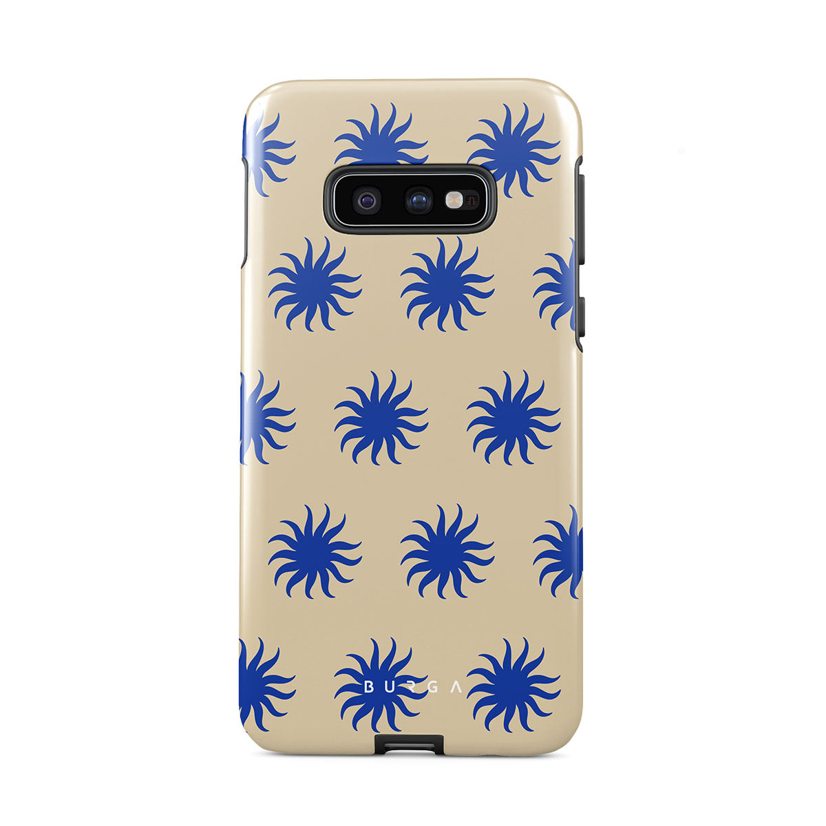 Immerse yourself in the vibrant spirit of the tropics with our La Playa Samsung Galaxy S10E phone case. This design boasts a warm, sandy beige base highlighted by striking blue motifs, reminiscent of the breezy Caribbean islands. It’s a stylish celebration of coastal beauty.
