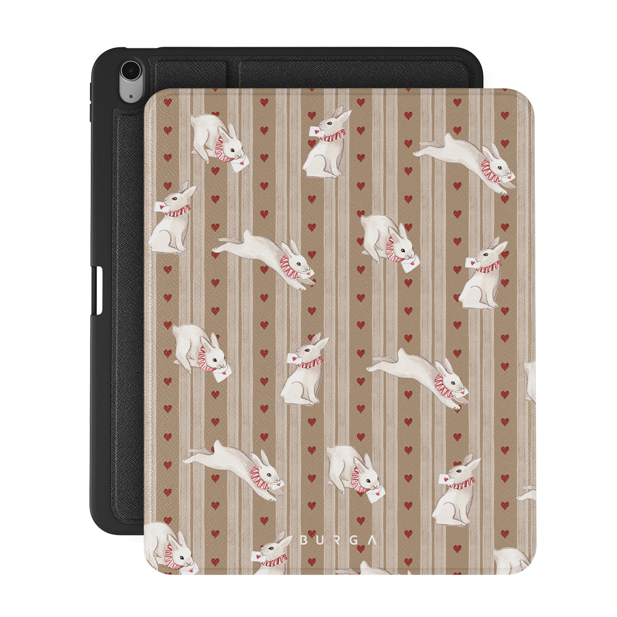 The Late Again folio case design is a love letter lost in time—scattered hearts, hurried notes, and white rabbits racing against a clock that refuses to be tamed. Sent, but never received. Read, but never answered. Always running, always chasing, always just a moment too late.