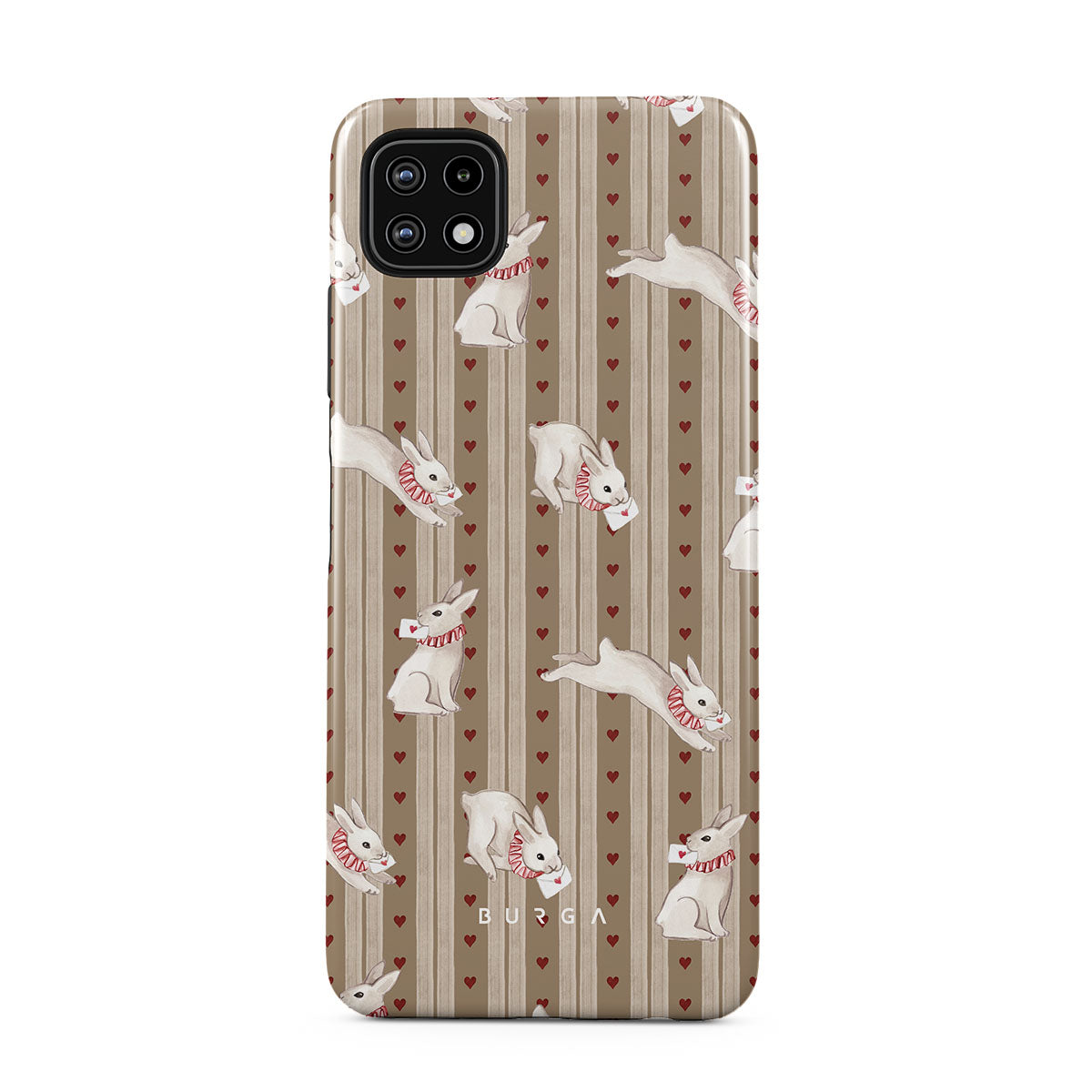 The Late Again Samsung Galaxy A22 5G phone case design is a love letter lost in time—scattered hearts, hurried notes, and white rabbits racing against a clock that refuses to be tamed. Sent, but never received. Read, but never answered. Always running, always chasing, always just a moment too late.