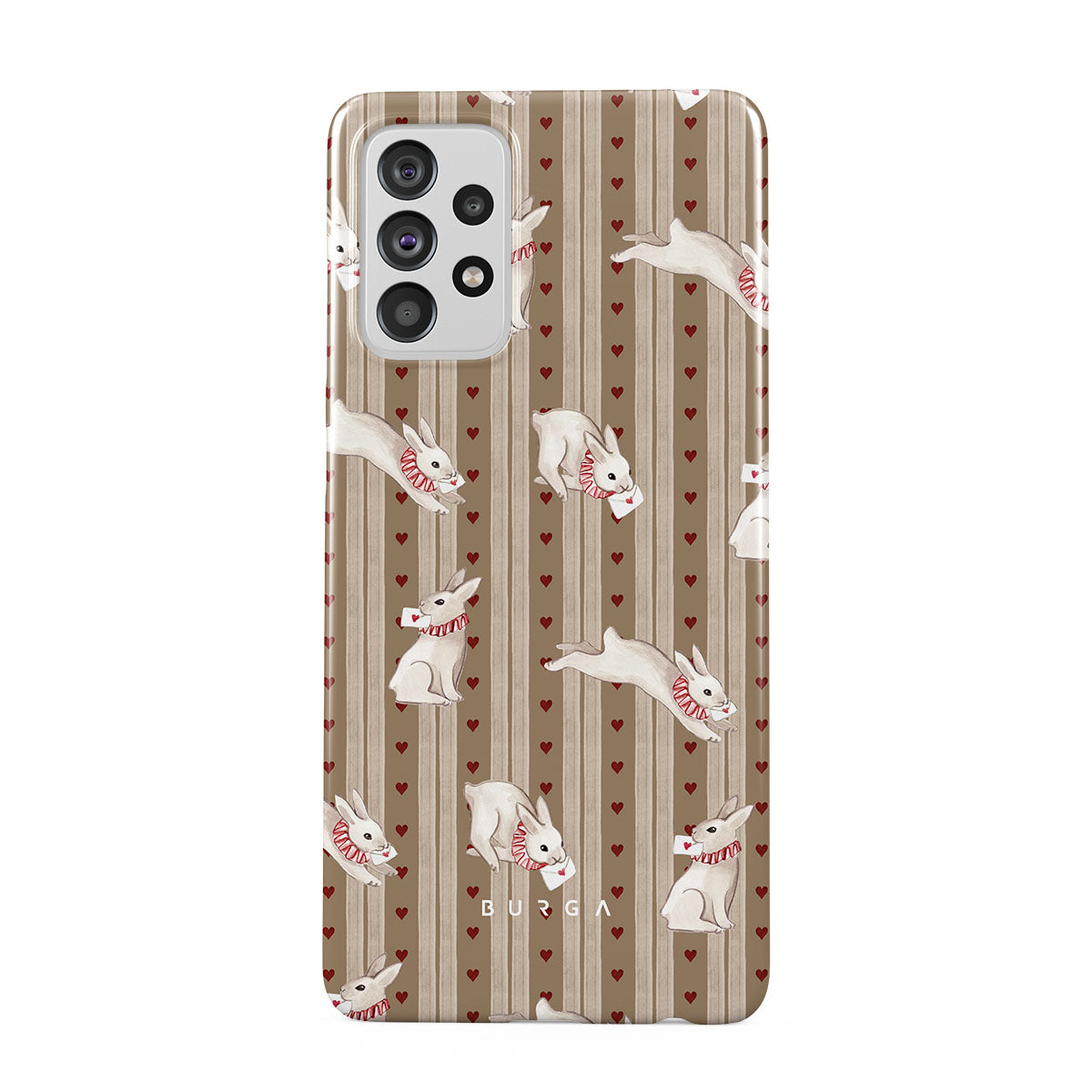 The Late Again Samsung Galaxy A72 4G / 5G phone case design is a love letter lost in time—scattered hearts, hurried notes, and white rabbits racing against a clock that refuses to be tamed. Sent, but never received. Read, but never answered. Always running, always chasing, always just a moment too late.