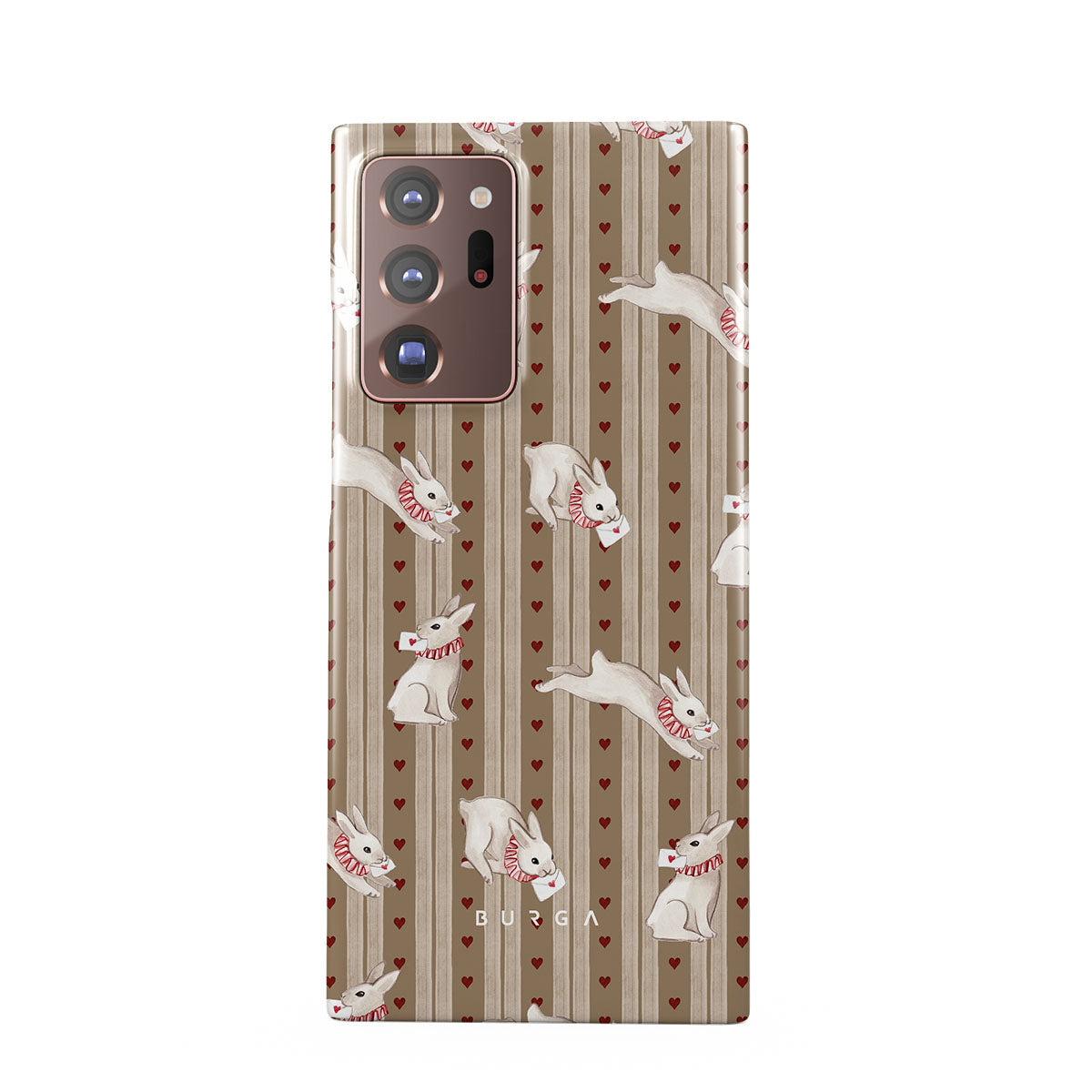 The Late Again Samsung Galaxy Note 20 Ultra 4G / 5G phone case design is a love letter lost in time—scattered hearts, hurried notes, and white rabbits racing against a clock that refuses to be tamed. Sent, but never received. Read, but never answered. Always running, always chasing, always just a moment too late.