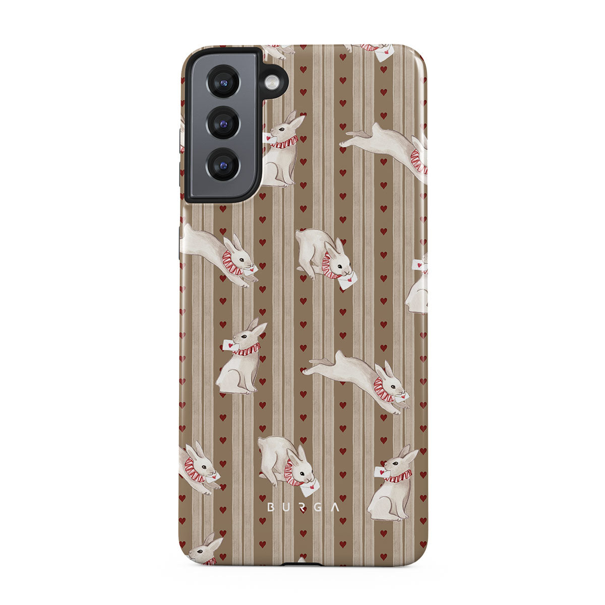 The Late Again Samsung Galaxy S21 phone case design is a love letter lost in time—scattered hearts, hurried notes, and white rabbits racing against a clock that refuses to be tamed. Sent, but never received. Read, but never answered. Always running, always chasing, always just a moment too late.