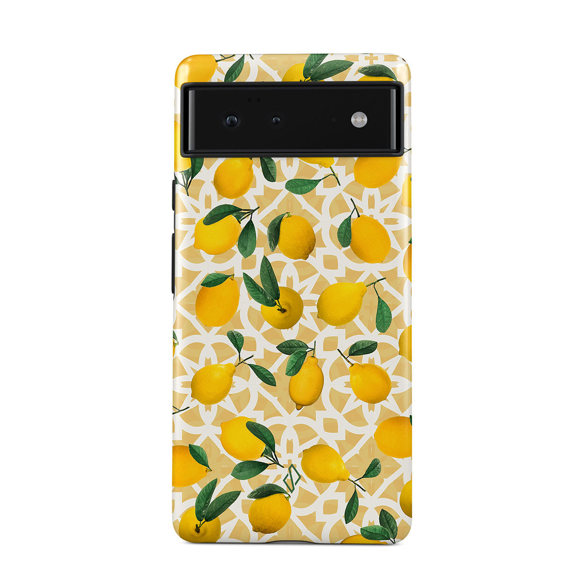 Freshly squeezed, freshly made drops in water, in your tea, and the scent that gives the energy for the rest of the day. Feel that energy with our Lemon Juice Google Pixel 6a phone case made with a bright yellow lemons pattern that catches the eye. Let your phone become an energy beacon for your day!