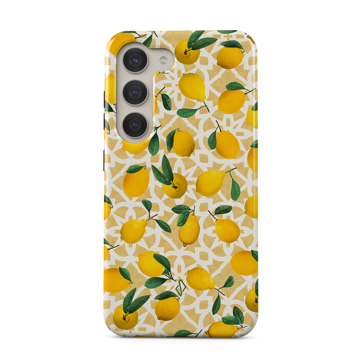 Freshly squeezed, freshly made – drops in water, in your tea, and the scent that gives the energy for the rest of the day. Feel that energy with our Lemon Juice Samsung Galaxy S23 Plus phone case made with a bright yellow lemons pattern that catches the eye. Let your phone become an energy beacon for your day!
