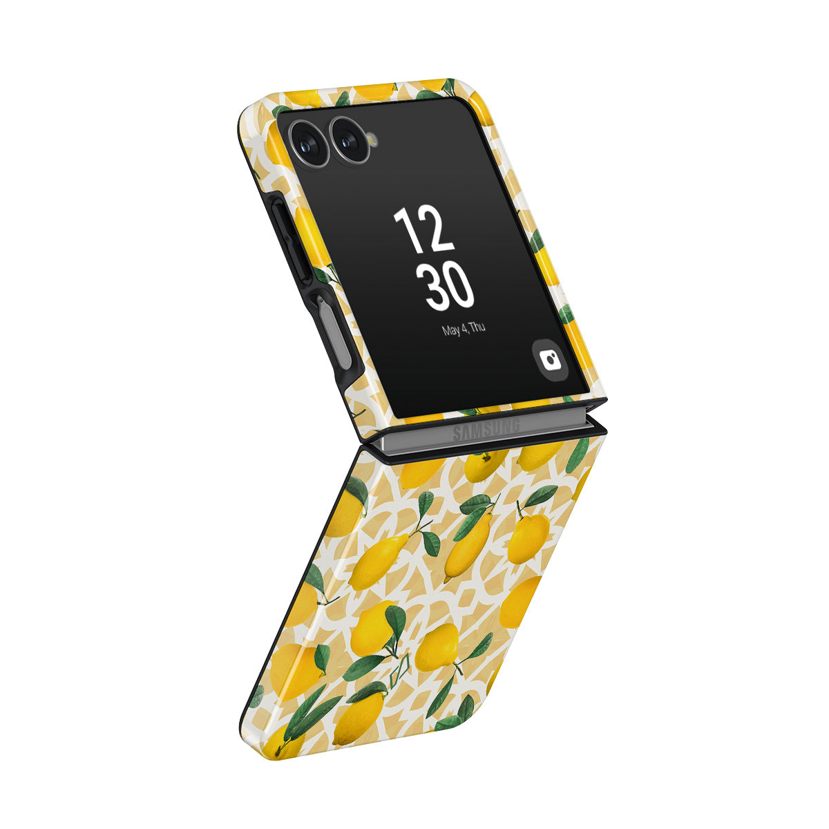 Freshly squeezed, freshly made – drops in water, in your tea, and the scent that gives the energy for the rest of the day. Feel that energy with our Lemon Juice Samsung Galaxy Z Flip 7 phone case made with a bright yellow lemons pattern that catches the eye. Let your phone become an energy beacon for your day!