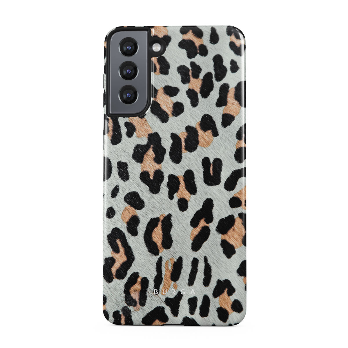 Make your Samsung Galaxy S21 phone case a statement piece with our Baby Leo design. The timeless leopard print is reimagined on a beautiful pastel blue background. Now you can protect your phone in style.