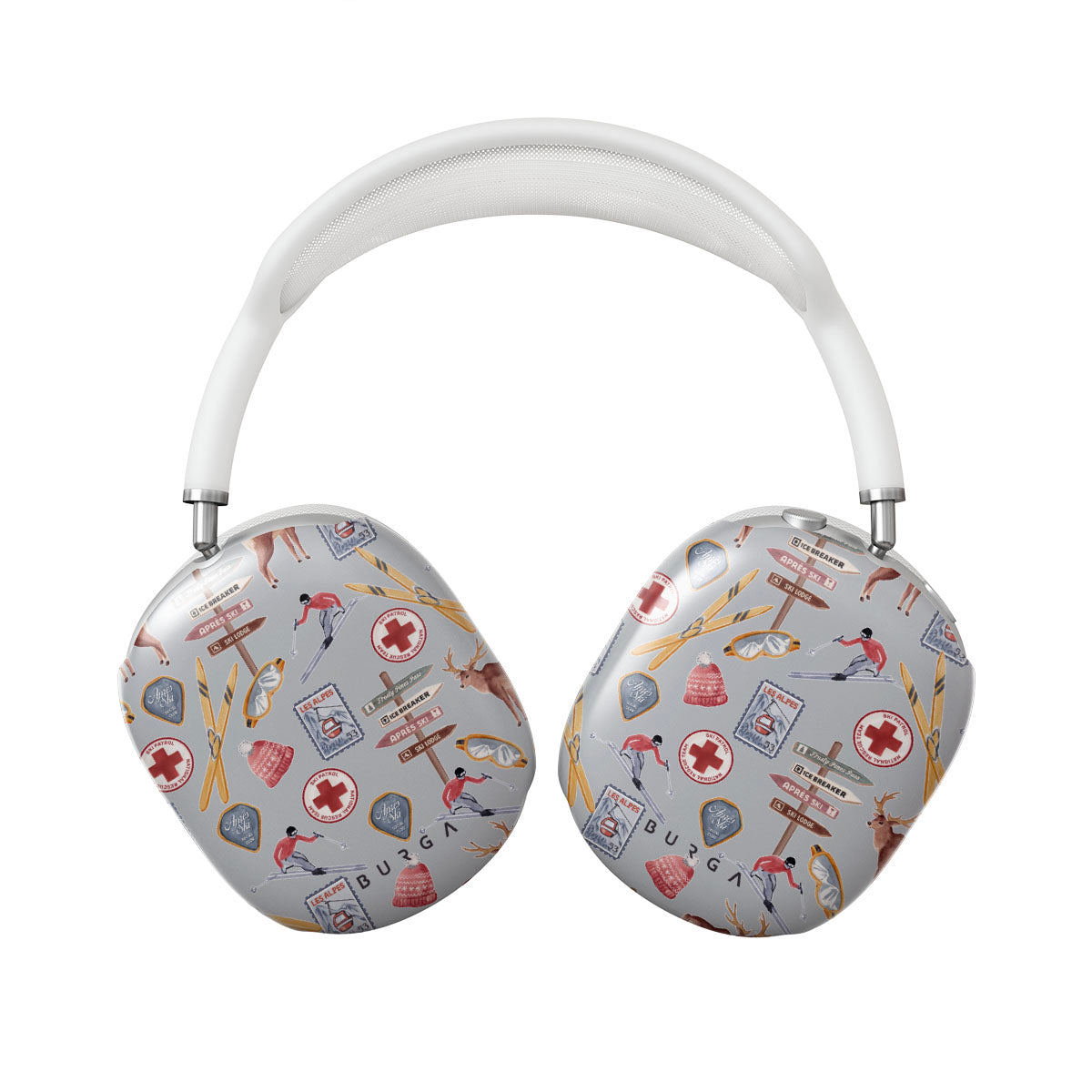 A vintage ski poster straight from your dad's college dorm. A Apple AirPods Max case design dripping with nostalgia.