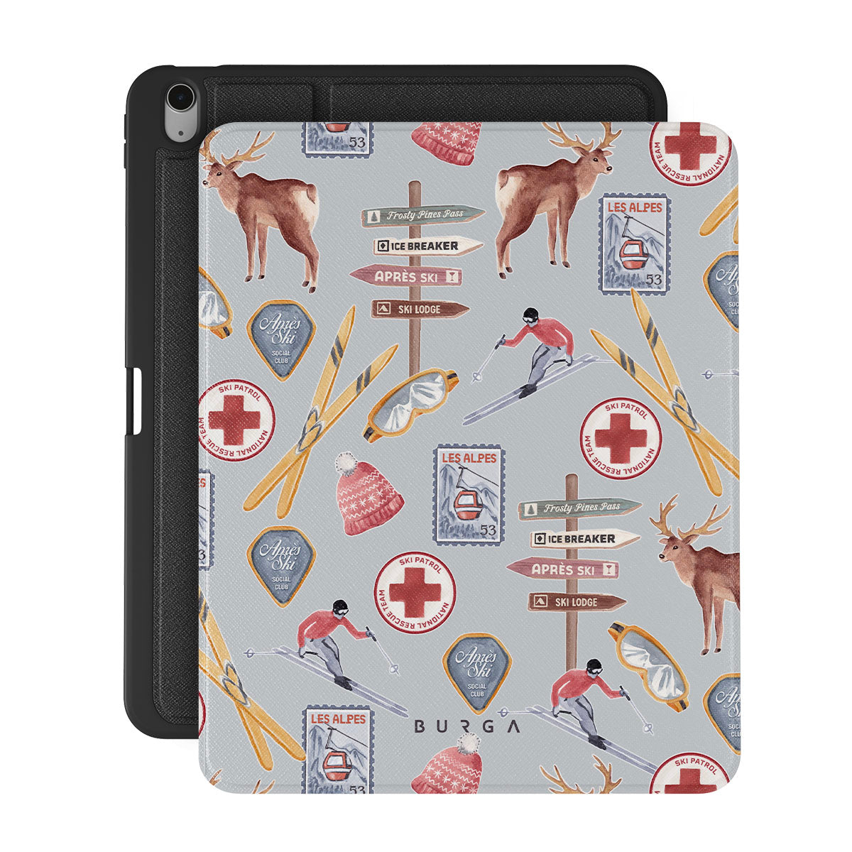 A vintage ski poster straight from your dad's college dorm. A iPad Air 13 (7th/6th Gen) folio case design dripping with nostalgia.