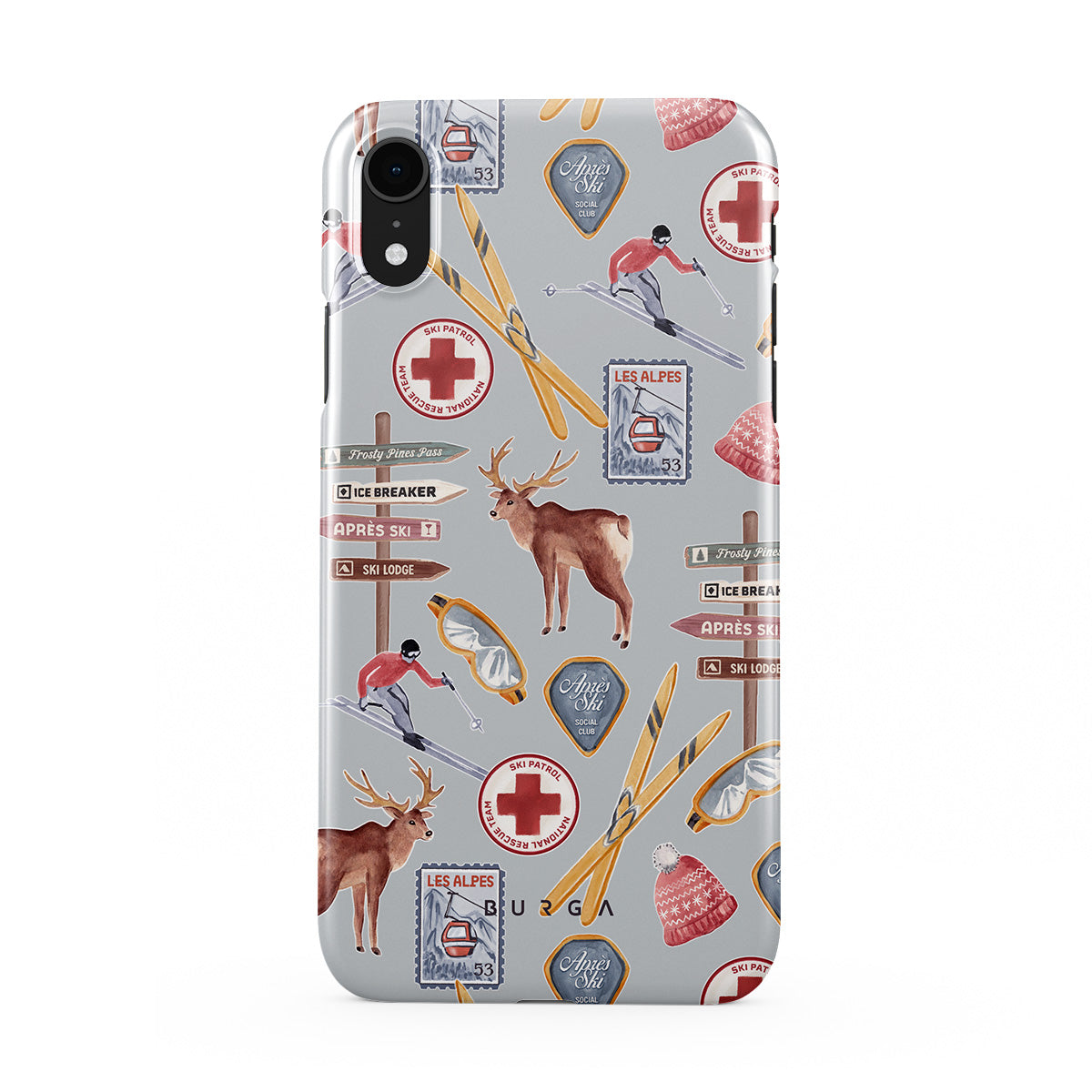 A vintage ski poster straight from your dad's college dorm. A iPhone XR phone case design dripping with nostalgia.