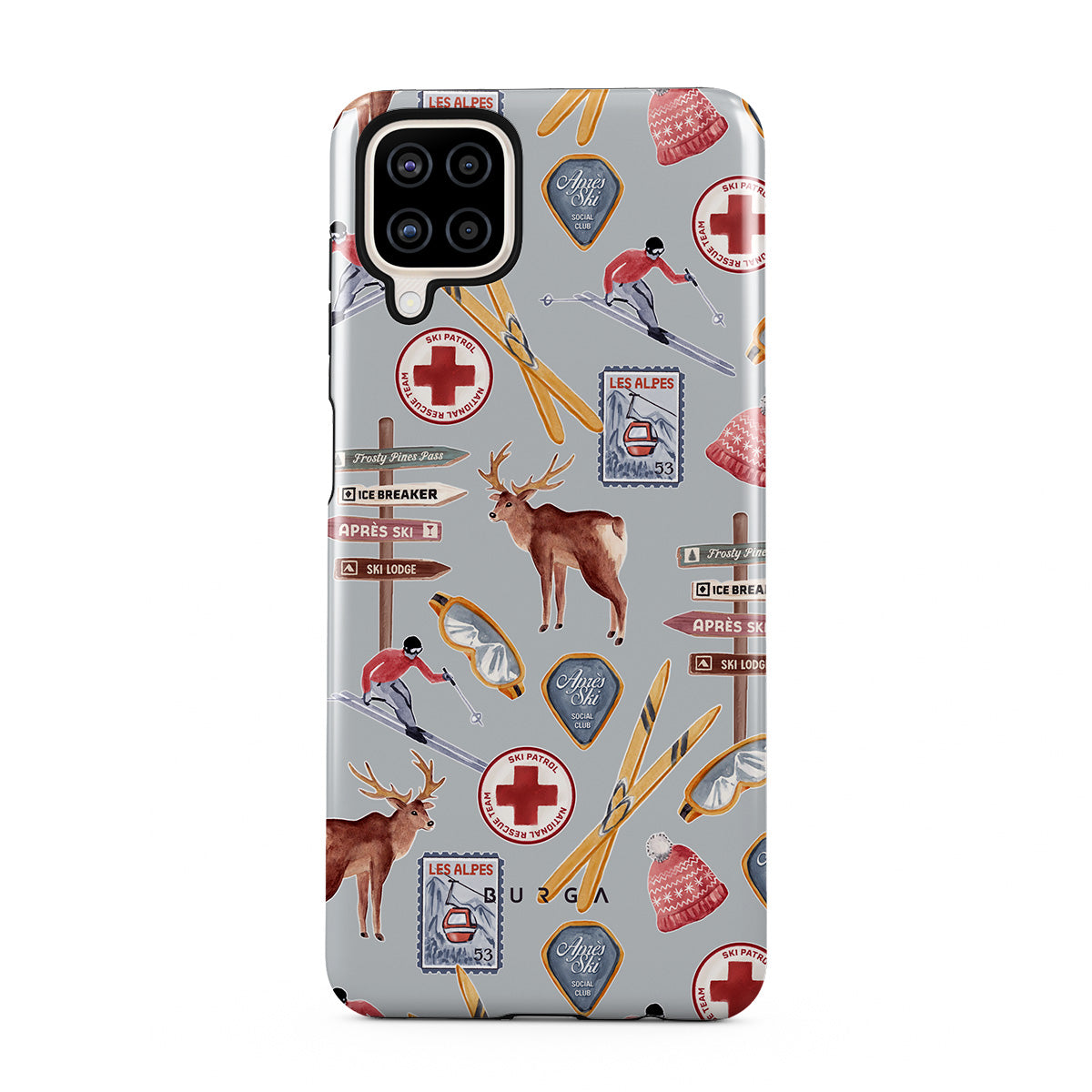 A vintage ski poster straight from your dad's college dorm. A Samsung Galaxy A12 4G phone case design dripping with nostalgia.