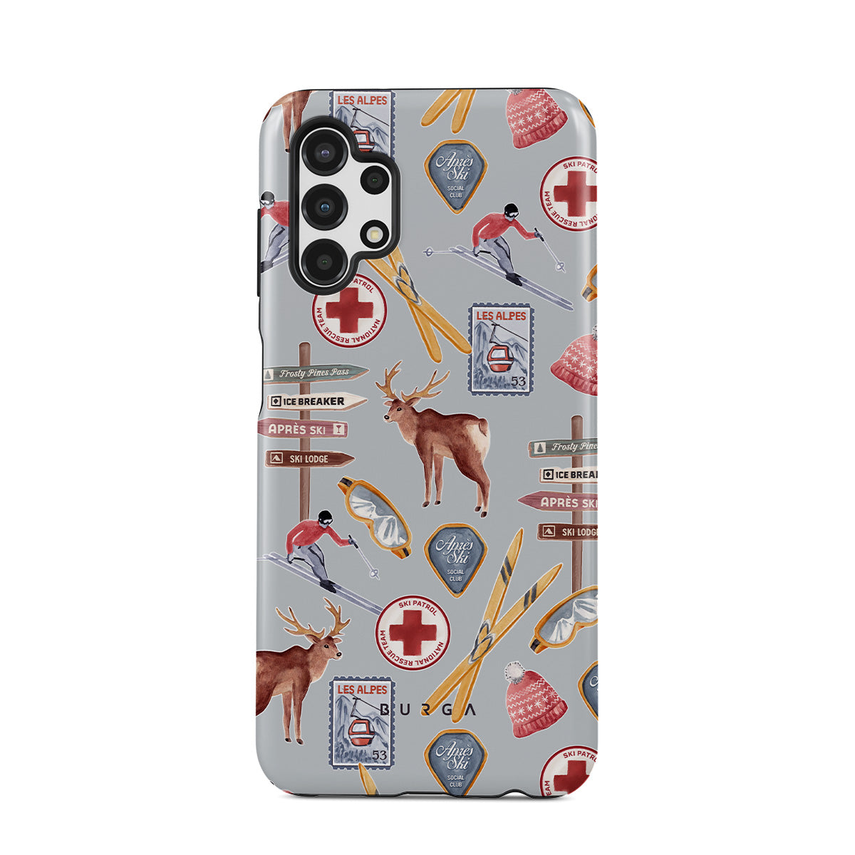 A vintage ski poster straight from your dad's college dorm. A Samsung Galaxy A13 4G phone case design dripping with nostalgia.