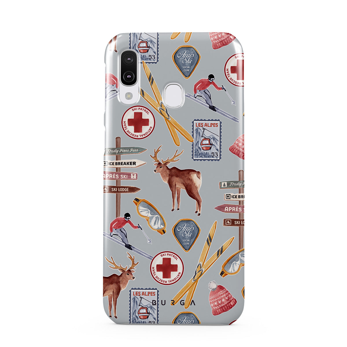A vintage ski poster straight from your dad's college dorm. A Samsung Galaxy A40 phone case design dripping with nostalgia.
