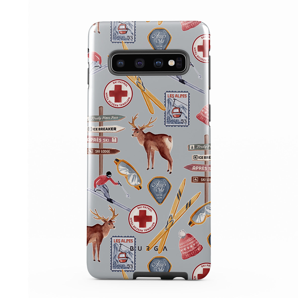 A vintage ski poster straight from your dad's college dorm. A Samsung Galaxy S10 phone case design dripping with nostalgia.
