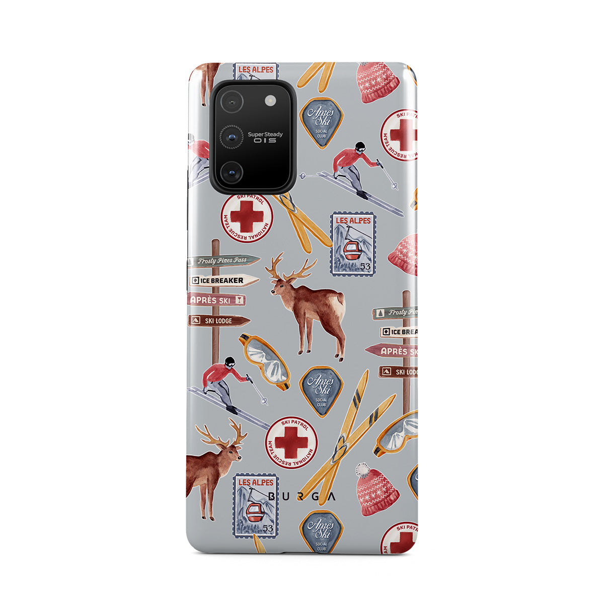 A vintage ski poster straight from your dad's college dorm. A Samsung Galaxy S10 Lite phone case design dripping with nostalgia.
