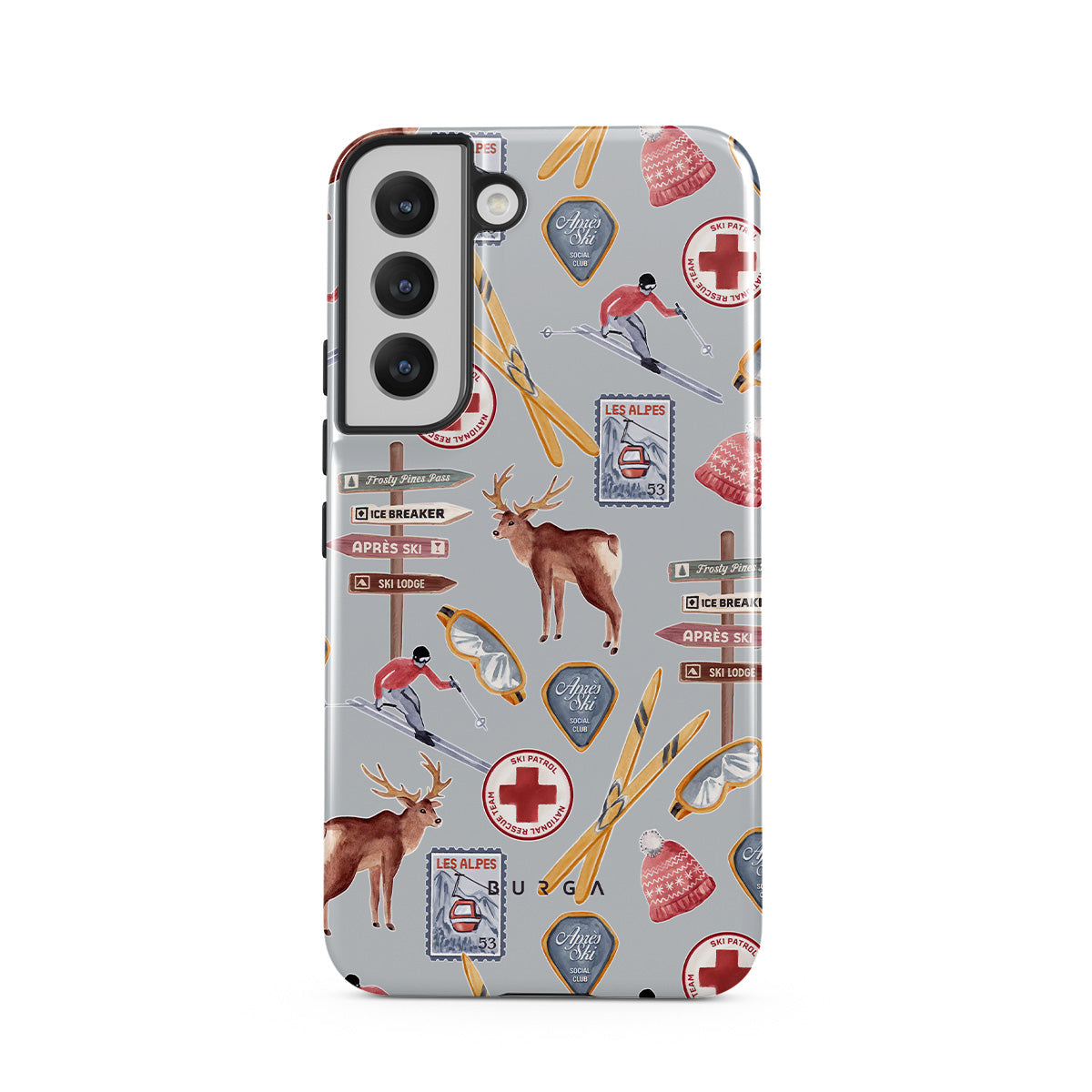 A vintage ski poster straight from your dad's college dorm. A Samsung Galaxy S22 Plus phone case design dripping with nostalgia.