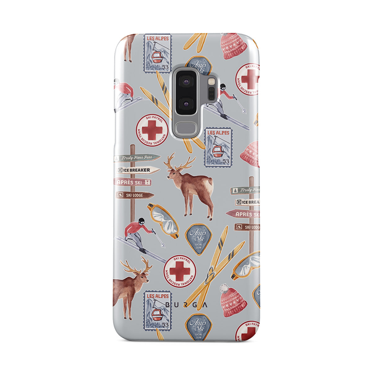 A vintage ski poster straight from your dad's college dorm. A Samsung Galaxy S9 Plus phone case design dripping with nostalgia.
