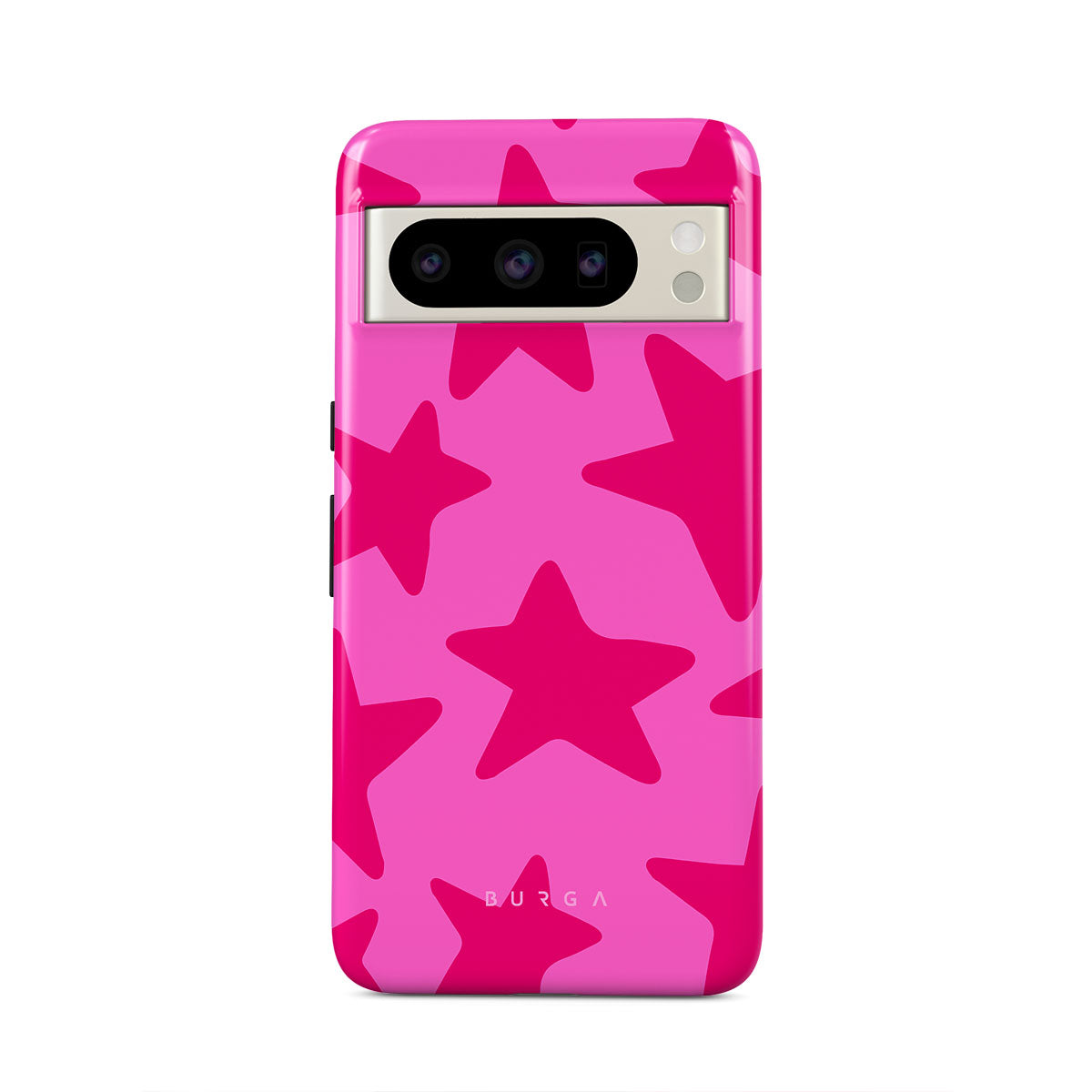 Indulge in a heavenly playground where stars engage in a captivating cosmic game of tag. Enjoy a celestial carnival and fashion fantasy dipped in a sugar-rush of pink. Live the Paradise City dream with our Let's Go Party Google Pixel 8 Pro phone case and flaunt your style.