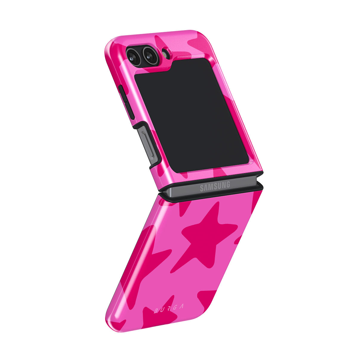 Indulge in a heavenly playground where stars engage in a captivating cosmic game of tag. Enjoy a celestial carnival and fashion fantasy dipped in a sugar-rush of pink. Live the Paradise City dream with our Let's Go Party Samsung Galaxy Z Flip 5 phone case and flaunt your style.