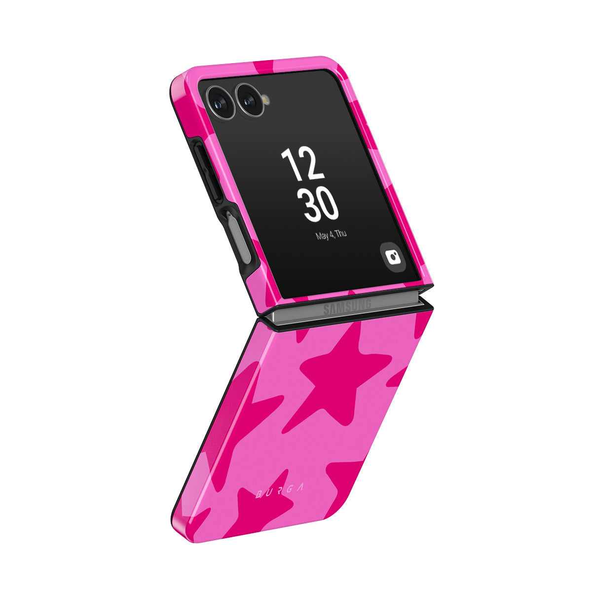 Indulge in a heavenly playground where stars engage in a captivating cosmic game of tag. Enjoy a celestial carnival and fashion fantasy dipped in a sugar-rush of pink. Live the Paradise City dream with our Let's Go Party Samsung Galaxy Z Flip 7 phone case and flaunt your style.