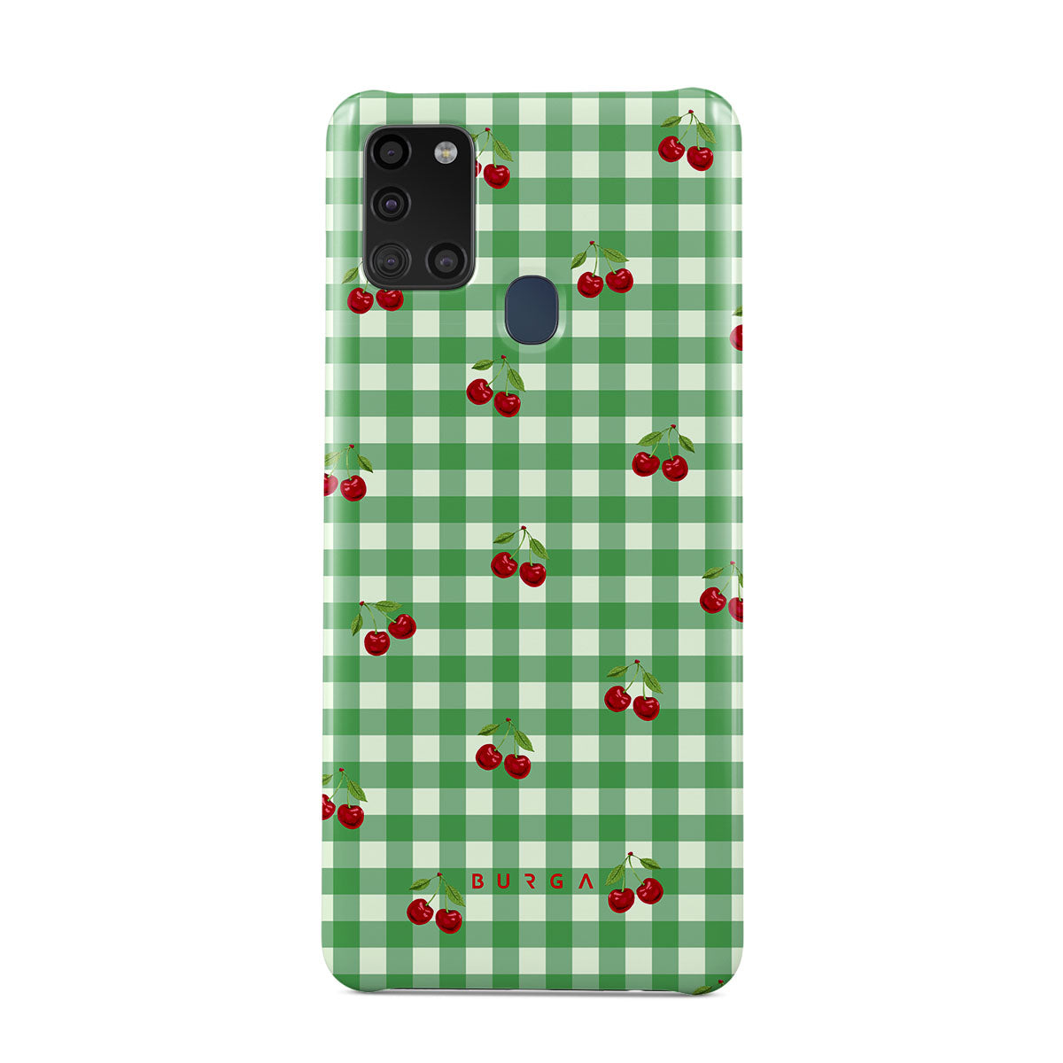 The Little Life Samsung Galaxy A21s 4G phone case design: green checks, simple and true, like a patch of grass under a tree, where you can sit and watch the small world go by, every leaf a chapter in nature’s story.