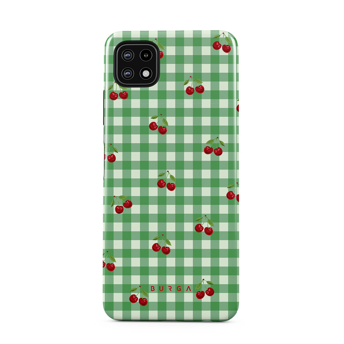 The Little Life Samsung Galaxy A22 5G phone case design: green checks, simple and true, like a patch of grass under a tree, where you can sit and watch the small world go by, every leaf a chapter in nature’s story.