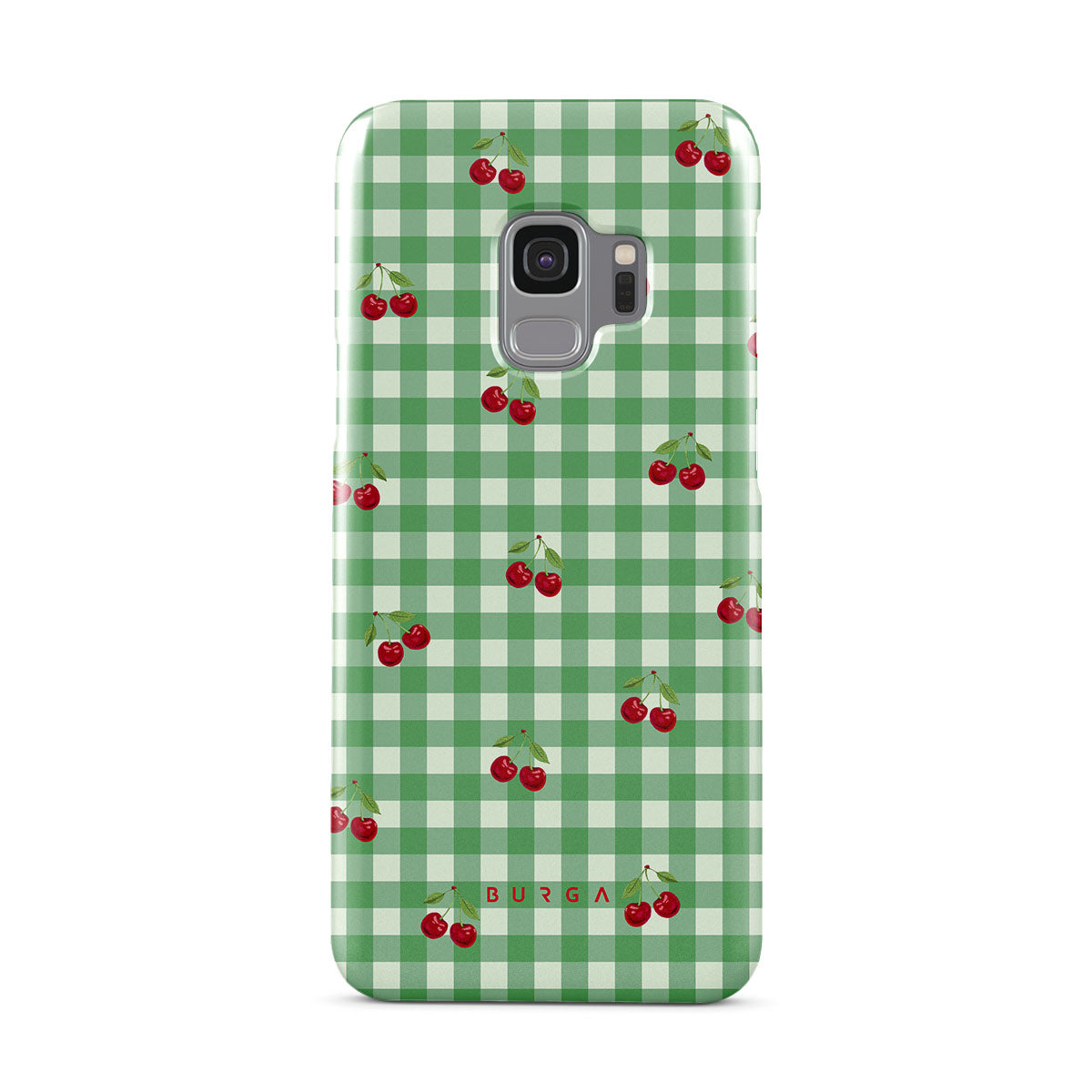 The Little Life Samsung Galaxy S9 phone case design: green checks, simple and true, like a patch of grass under a tree, where you can sit and watch the small world go by, every leaf a chapter in nature’s story.