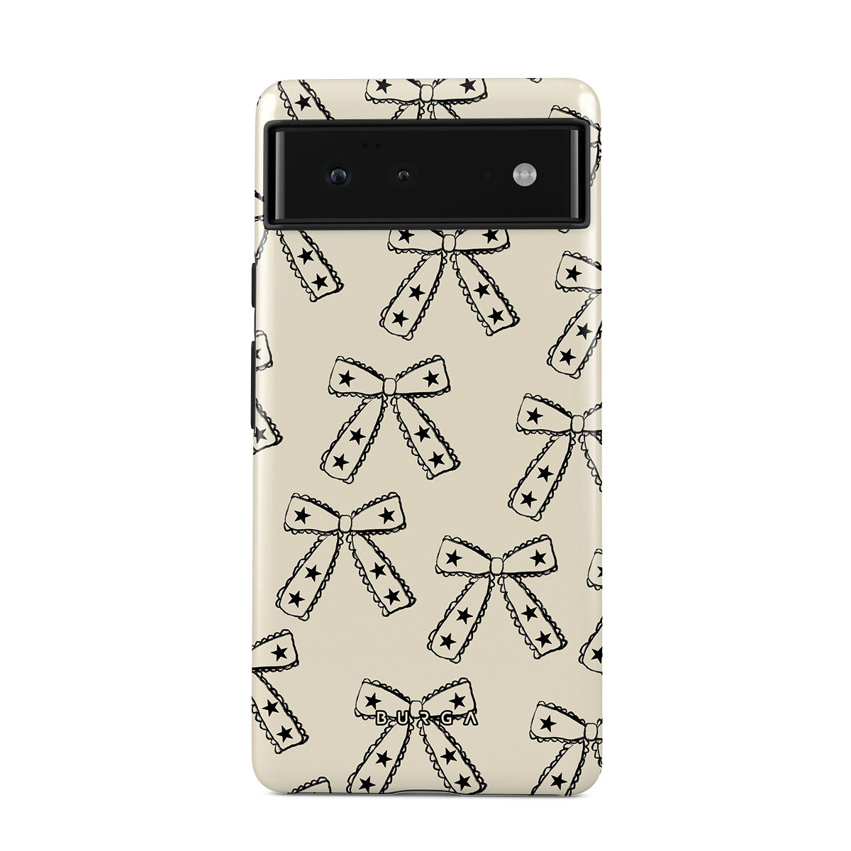 Shine on, Lone Star. Starry bows on a beige background bring a fun twist to your look. This Google Pixel 6a phone case design is ideal for those who march to the beat of their own drum and make their own fashion rules.