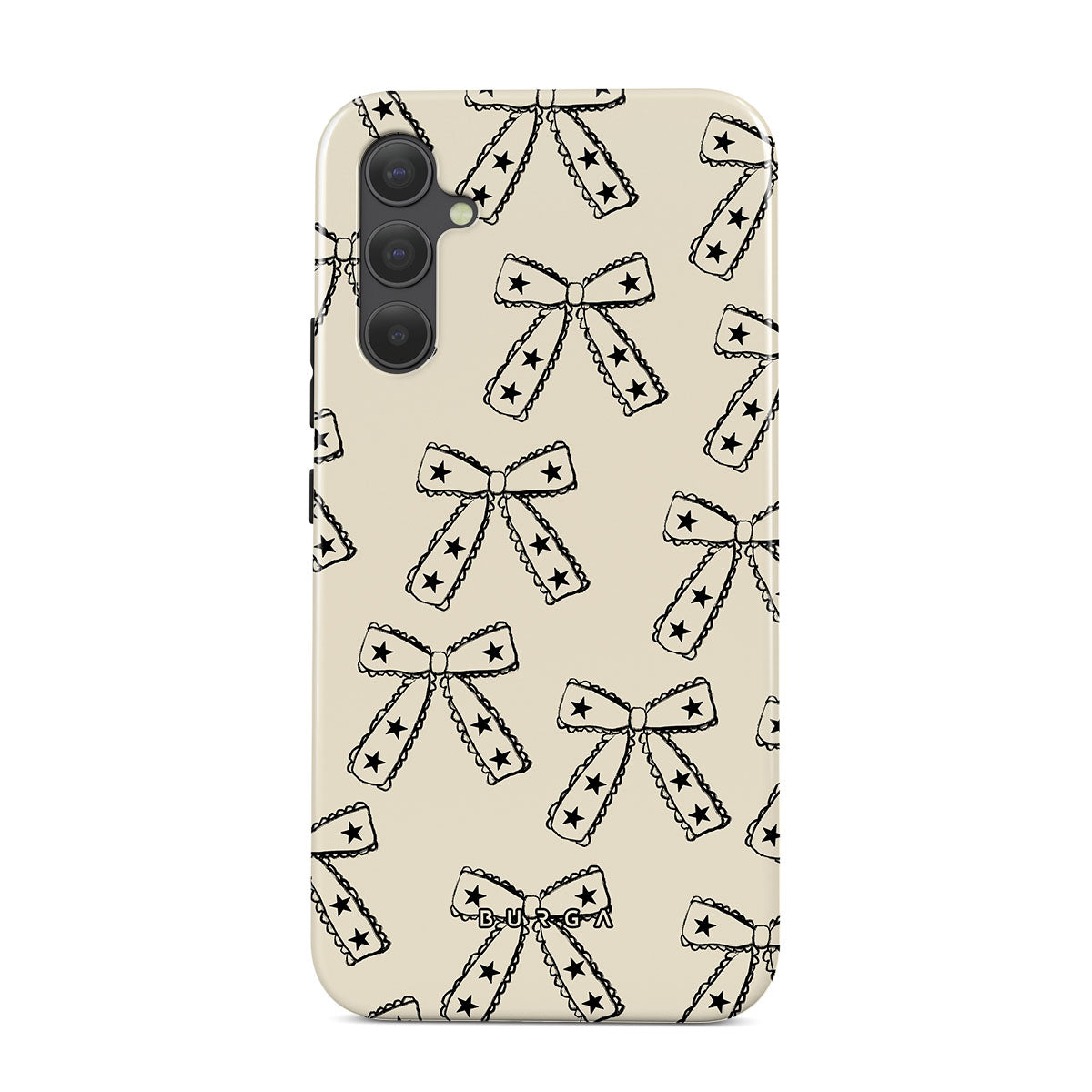 Shine on, Lone Star. Starry bows on a beige background bring a fun twist to your look. This Samsung Galaxy A34 phone case design is ideal for those who march to the beat of their own drum and make their own fashion rules.