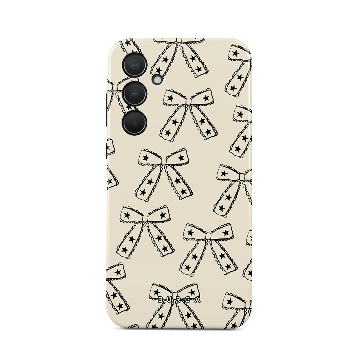 Shine on, Lone Star. Starry bows on a beige background bring a fun twist to your look. This Samsung Galaxy A35 phone case design is ideal for those who march to the beat of their own drum and make their own fashion rules.