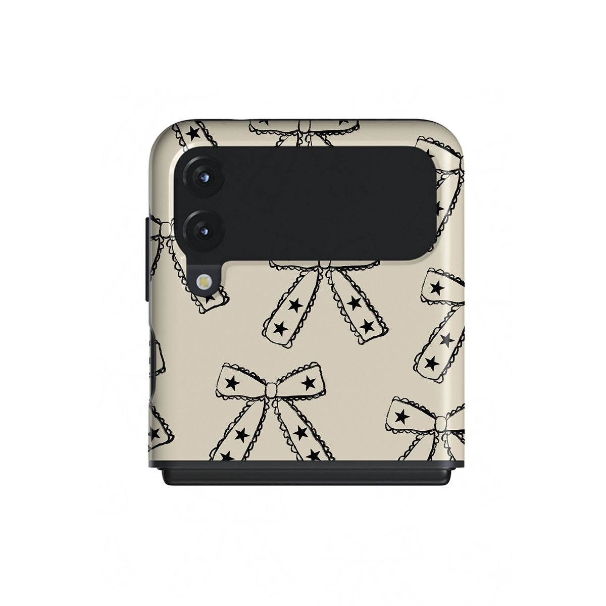 Shine on, Lone Star. Starry bows on a beige background bring a fun twist to your look. This Samsung Galaxy Z Flip 3 phone case design is ideal for those who march to the beat of their own drum and make their own fashion rules.