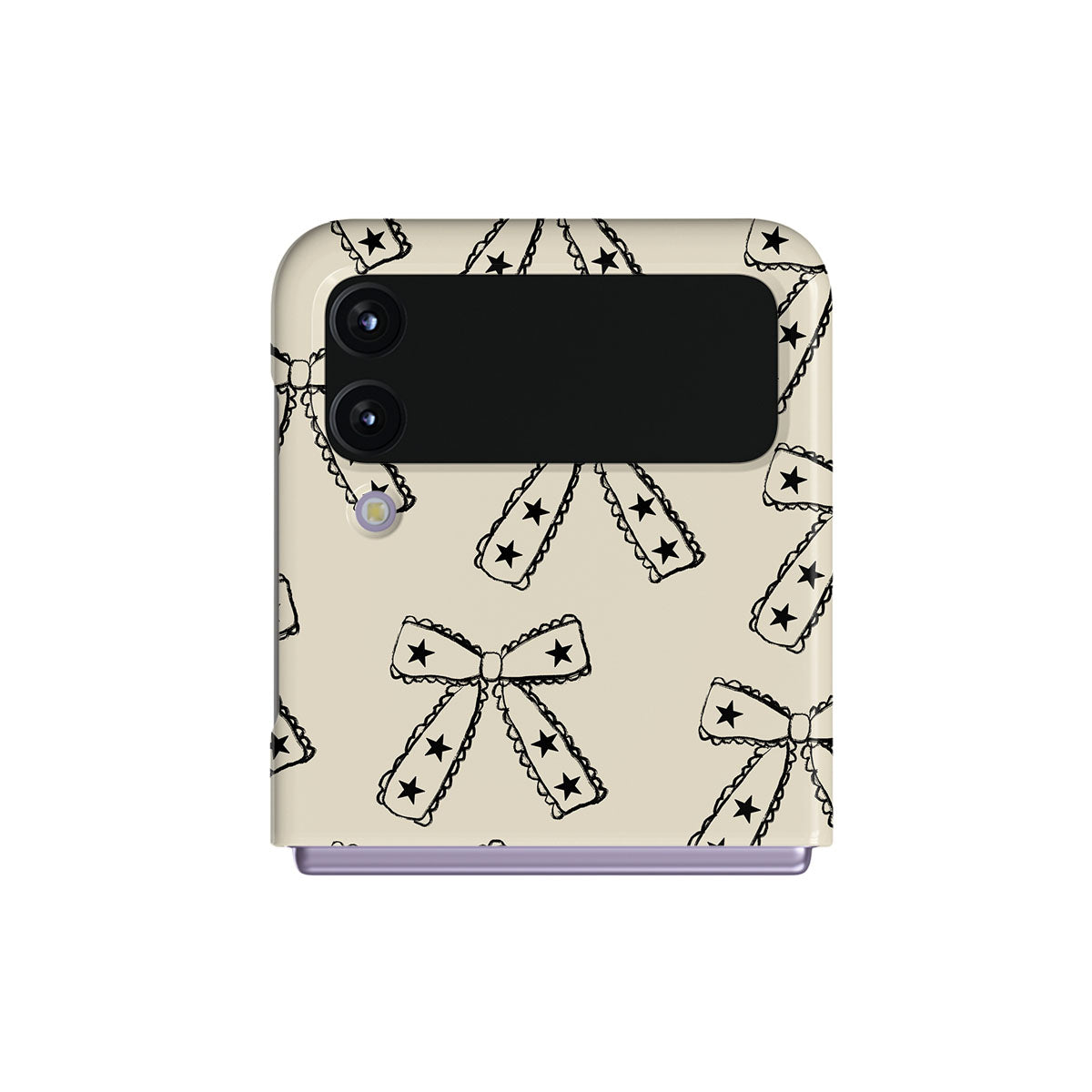 Shine on, Lone Star. Starry bows on a beige background bring a fun twist to your look. This Samsung Galaxy Z Flip 4 phone case design is ideal for those who march to the beat of their own drum and make their own fashion rules.