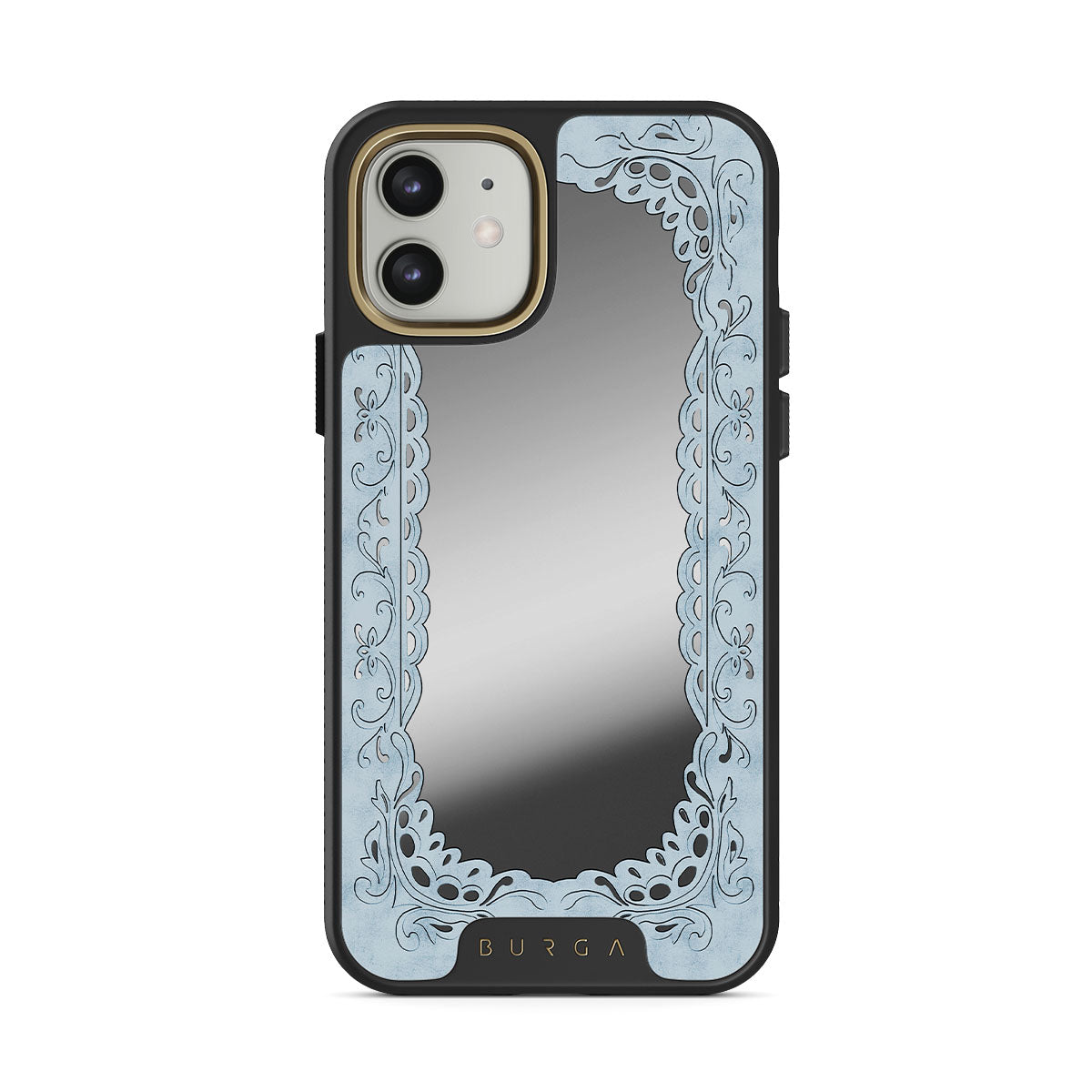 Peer into the Looking Glass iPhone 11 phone case design, and something peers back. A delicate blue frame, a mirror surface, and the quiet unease that maybe, just maybe, you're not the only one looking.