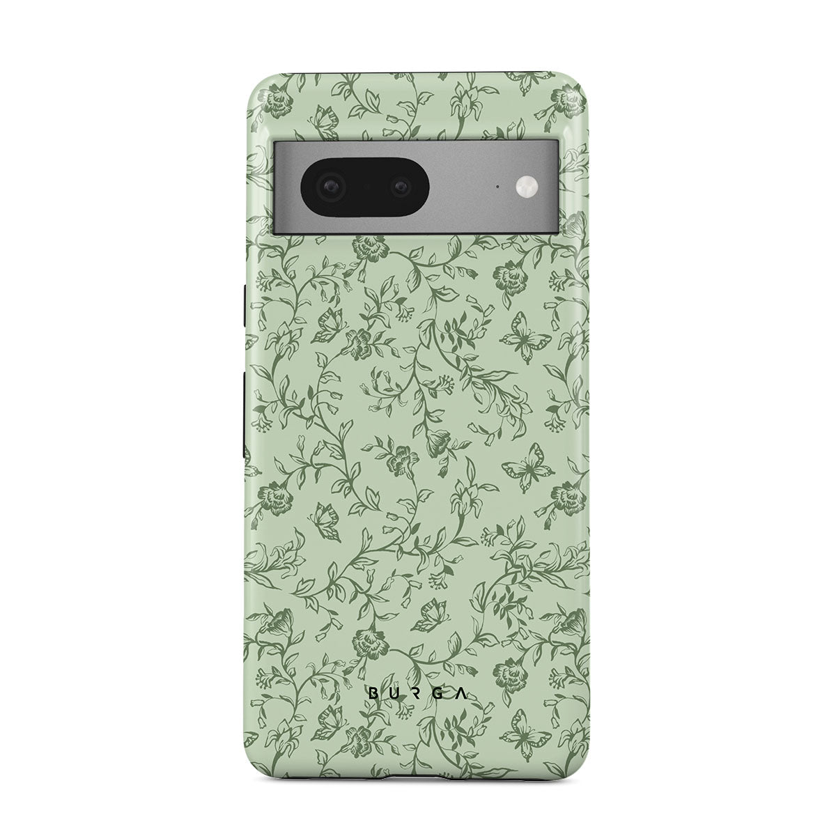 Soft green butterflies, delicate flowers, the kind of dream you wake up from but can’t quite shake. The Lost in Thought Google Pixel 7 phone case design lingers like a half-remembered story, floating just out of reach. Was it real? Or just another trick of Wonderland?