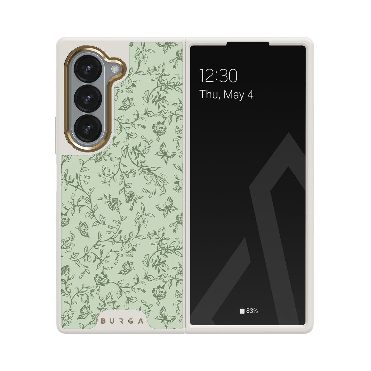 Soft green butterflies, delicate flowers, the kind of dream you wake up from but can’t quite shake. The Lost in Thought Samsung Galaxy Z Fold 6 phone case design lingers like a half-remembered story, floating just out of reach. Was it real? Or just another trick of Wonderland?