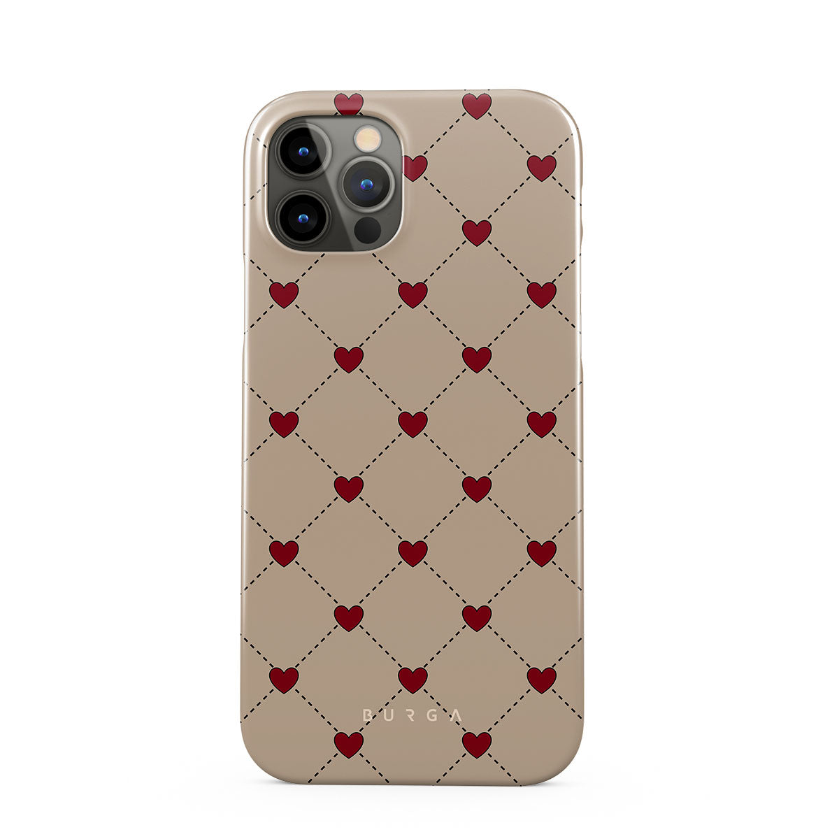 Secrets of the heart whispered between elegant beige diamonds. Every moment, a red heart shimmers—a hidden message, a silent wish, a love letter to the beholder. Discover our Love Letter iPhone 12 Pro Max Case phone case design.