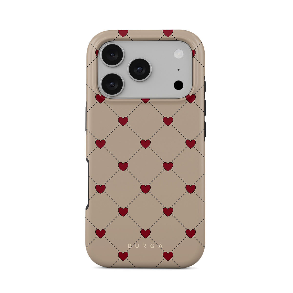 Secrets of the heart whispered between elegant beige diamonds. Every moment, a red heart shimmers—a hidden message, a silent wish, a love letter to the beholder. Discover our Love Letter iPhone 17 Pro Case phone case design.
