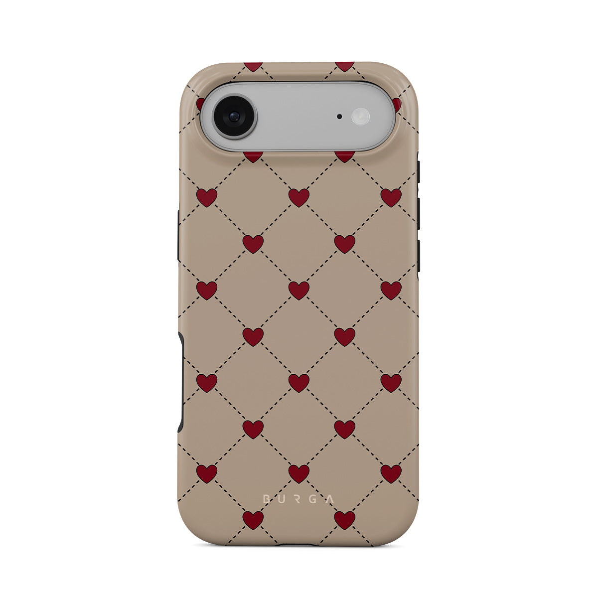 Secrets of the heart whispered between elegant beige diamonds. Every moment, a red heart shimmers—a hidden message, a silent wish, a love letter to the beholder. Discover our Love Letter iPhone Air Case phone case design.