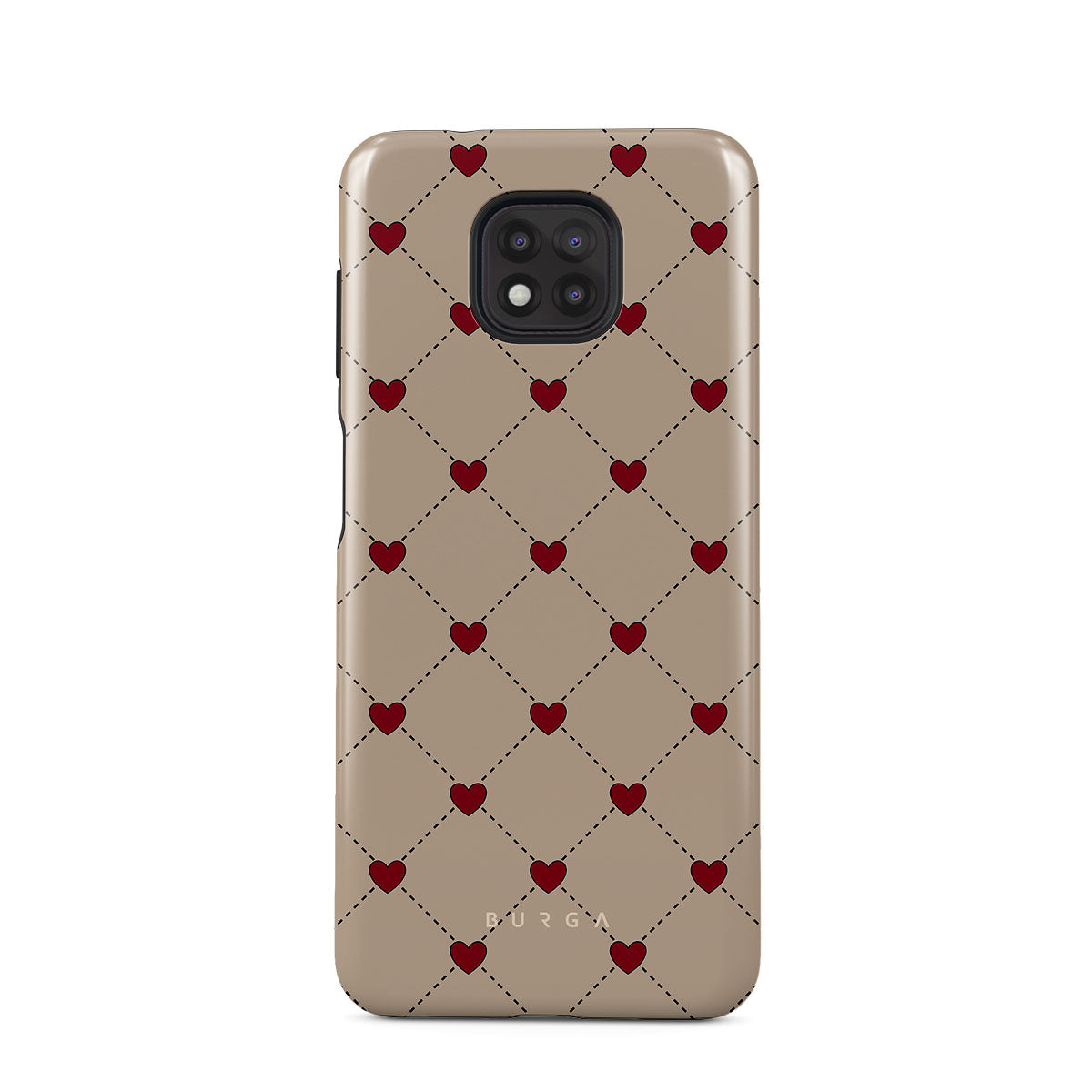 Secrets of the heart whispered between elegant beige diamonds. Every moment, a red heart shimmers—a hidden message, a silent wish, a love letter to the beholder. Discover our Love Letter Motorola Moto G Power 2021 Case phone case design.