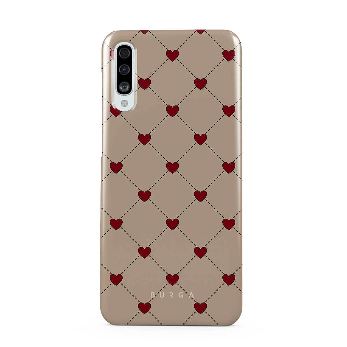 Secrets of the heart whispered between elegant beige diamonds. Every moment, a red heart shimmers—a hidden message, a silent wish, a love letter to the beholder. Discover our Love Letter Samsung Galaxy A50 Case phone case design.