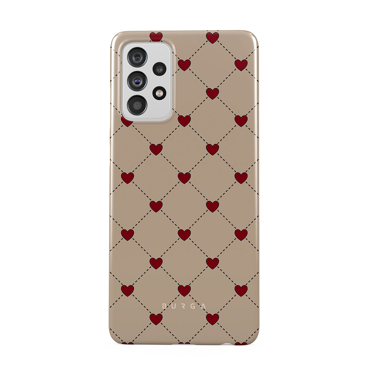 Secrets of the heart whispered between elegant beige diamonds. Every moment, a red heart shimmers—a hidden message, a silent wish, a love letter to the beholder. Discover our Love Letter Samsung Galaxy A72 4G / 5G Case phone case design.