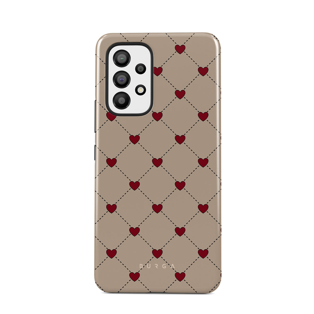Secrets of the heart whispered between elegant beige diamonds. Every moment, a red heart shimmers—a hidden message, a silent wish, a love letter to the beholder. Discover our Love Letter Samsung Galaxy A73 Case phone case design.