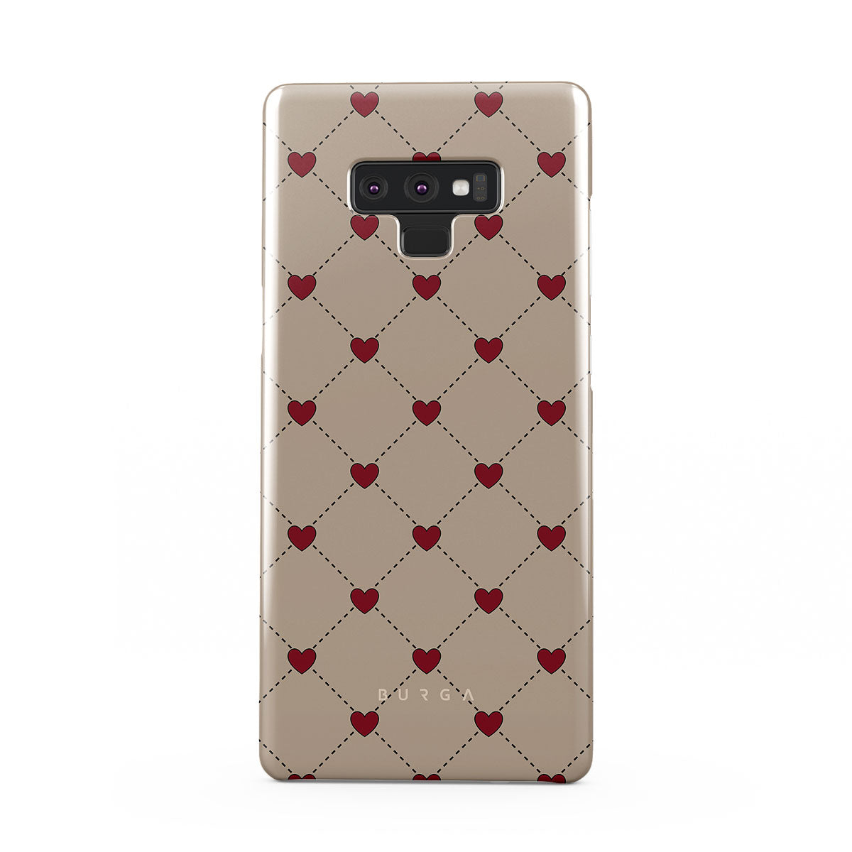 Secrets of the heart whispered between elegant beige diamonds. Every moment, a red heart shimmers—a hidden message, a silent wish, a love letter to the beholder. Discover our Love Letter Samsung Galaxy Note 9 Case phone case design.