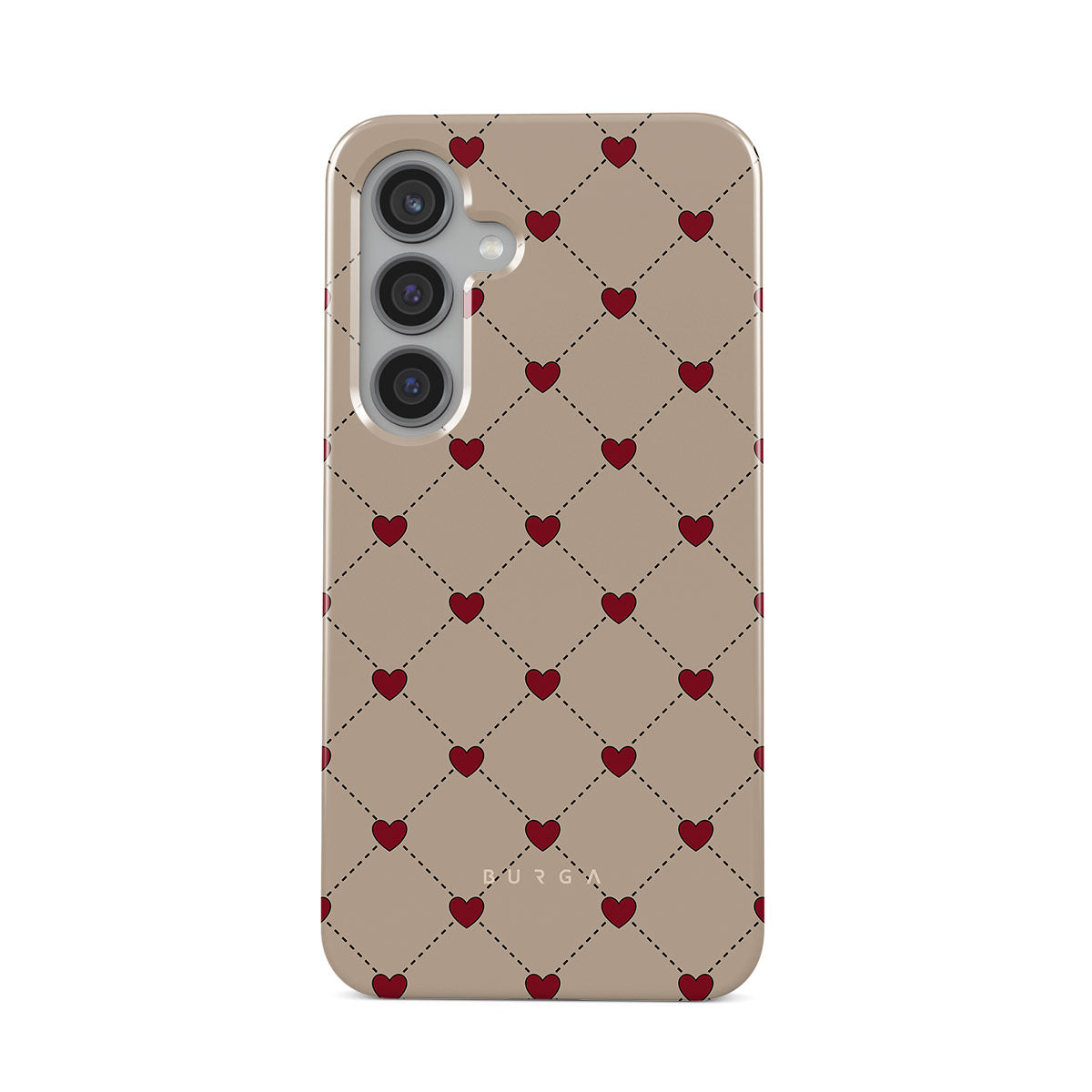 Secrets of the heart whispered between elegant beige diamonds. Every moment, a red heart shimmers—a hidden message, a silent wish, a love letter to the beholder. Discover our Love Letter Samsung Galaxy S24 FE Case phone case design.