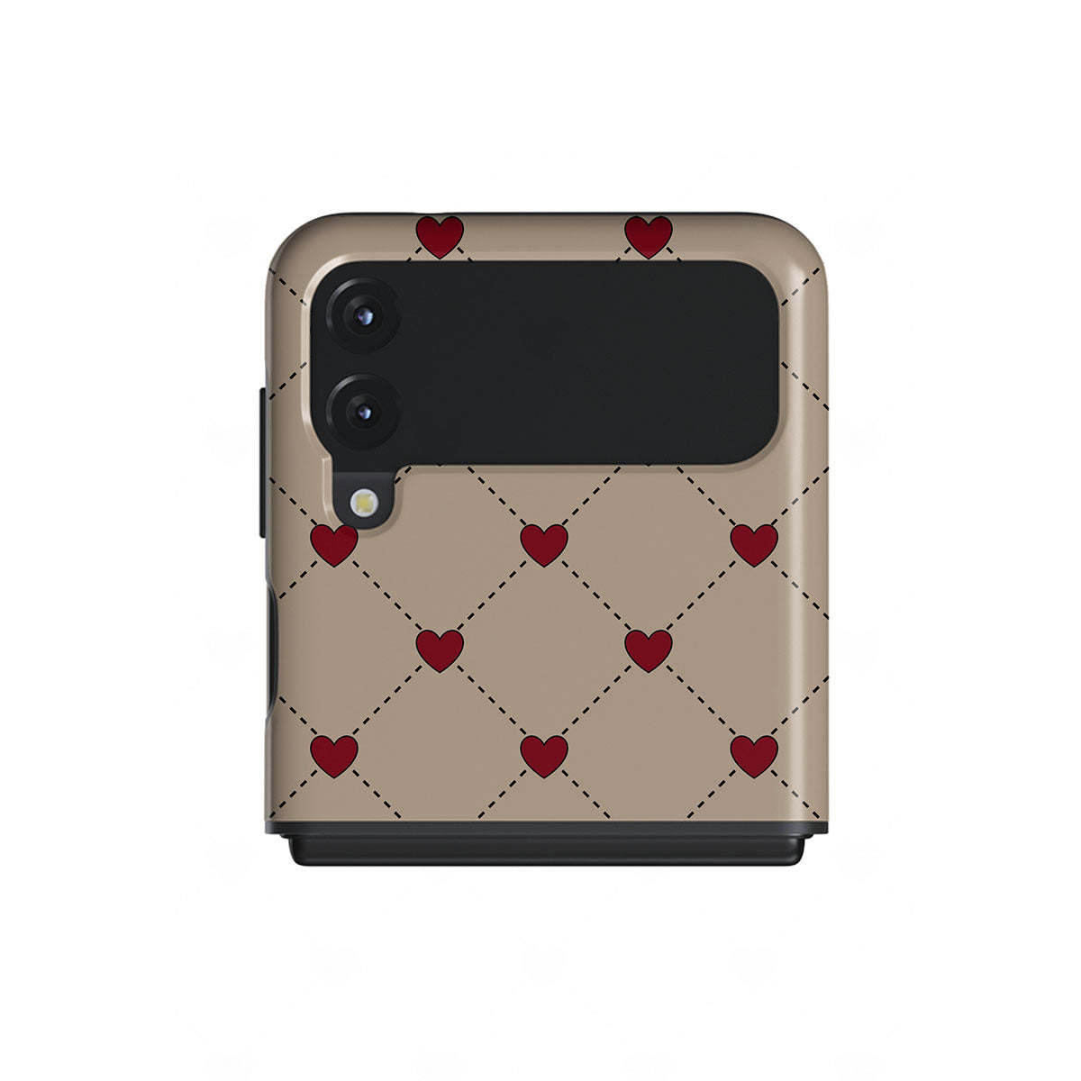 Secrets of the heart whispered between elegant beige diamonds. Every moment, a red heart shimmers—a hidden message, a silent wish, a love letter to the beholder. Discover our Love Letter Samsung Galaxy Z Flip 3 Case phone case design.