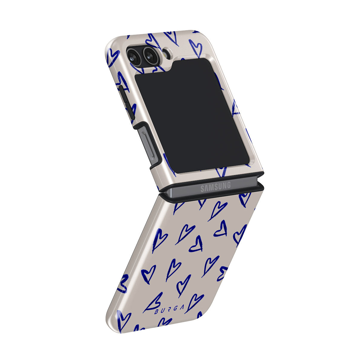 Let your Samsung Galaxy Z Flip 5 phone case be the declaration of passion it deserves with the charming Love Me Right design. The soft powder pink background and playful blue hearts create a whimsical and endearing look, making this case the perfect way to show off your loving yet cheeky side.