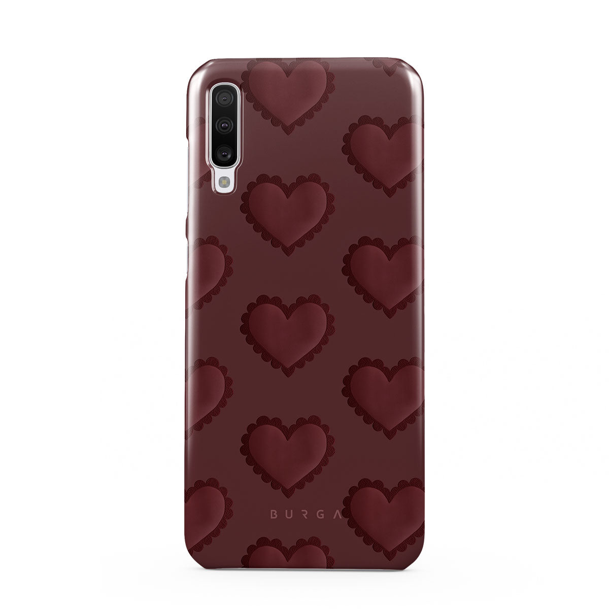 This Samsung Galaxy A70 phone case design is a bold declaration for those addicted to the rush of love. Deep red hearts stitched like scars of passion, Loveholic wears its emotions on its sleeve. It’s messy, intense, and intoxicating—a celebration of those who live for the thrill of surrendering completely to what sets their soul on fire.