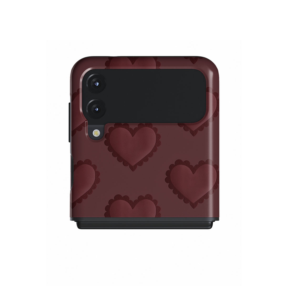 This Samsung Galaxy Z Flip 3 phone case design is a bold declaration for those addicted to the rush of love. Deep red hearts stitched like scars of passion, Loveholic wears its emotions on its sleeve. It’s messy, intense, and intoxicating—a celebration of those who live for the thrill of surrendering completely to what sets their soul on fire.